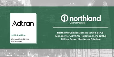 September 23, 2025NCM: Served as Co-Manager for ADTRAN Holdings, Inc.’s $201.3 Million Convertible Notes OfferingNorthland Capital Markets served as Co-Manager for ADTRAN Holdings, Inc.’s $201.3 Million Convertible Notes Offering. Northland Capital Markets’ Investment Banking group serves corporate clients by providing the financing services they need, with the experience and commitment to get the results they seek.