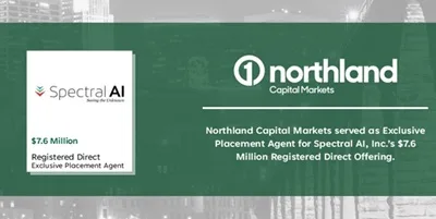 October 24, 2025NCM: Served as Exclusive Placement Agent for Spectral AI, Inc.’s $7.6 Million Registered Direct OfferingNorthland Capital Markets served as Exclusive Placement Agent for Spectral AI, Inc.’s $7.6 Million Registered Direct Offering. Northland Capital Markets’ Investment Banking group serves corporate clients by providing the financing services they need, with the experience and commitment to get the results they seek.