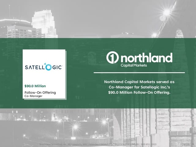 NCM: Served as Co-Manager for Satellogic Inc.’s $90.0 Million Follow-On Offering October 16, 2025 Northland Capital Markets served as Co-Manager for Satellogic Inc.’s $90.0 Million Follow-On Offering. Northland Capital Markets’ Investment Banking group serves corporate clients by providing the financing services they need, with the experience and commitment to get the results they seek.