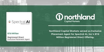 NCM: Served as Exclusive Placement Agent for Spectral AI, Inc.’s $7.6 Million Registered Direct Offering October 24, 2025 Northland Capital Markets served as Exclusive Placement Agent for Spectral AI, Inc.’s $7.6 Million Registered Direct Offering. Northland Capital Markets’ Investment Banking group serves corporate clients by providing the financing services they need, with the experience and commitment to get the results they seek.